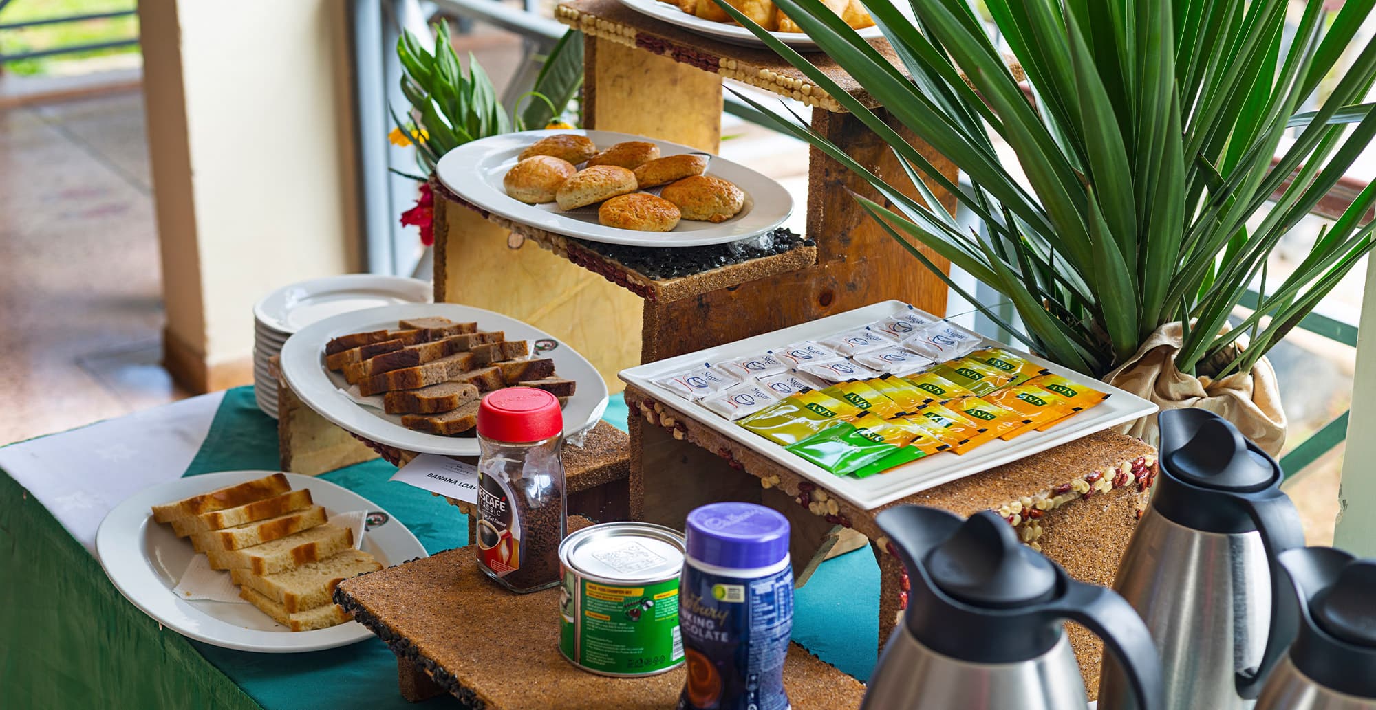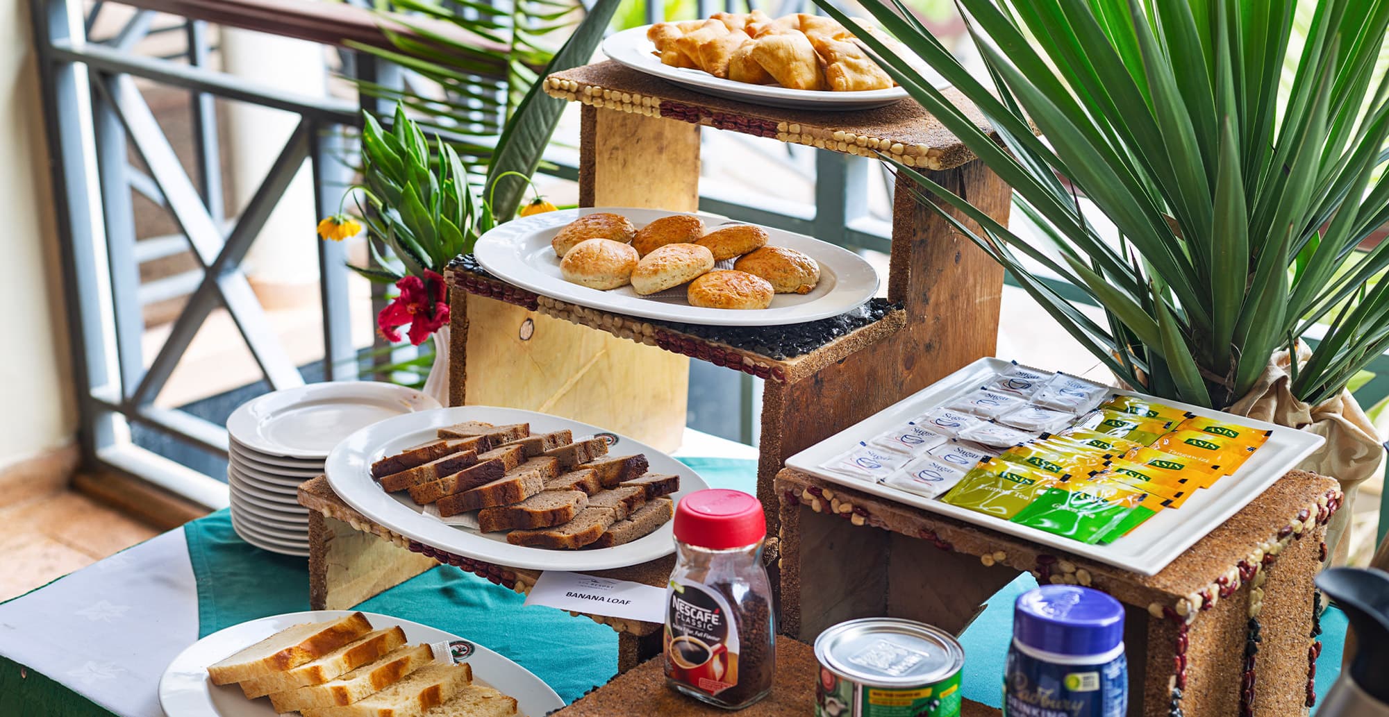 Step onto the terrace section to discover our enchanting al fresco dining space, where our lavish buffet spread awaits beneath open skies. This charming outdoor area overlooks lush garden landscapes, creating a tranquil backdrop as you savor a diverse selection of culinary delights. The gentle rustle of palm fronds and vibrant tropical greenery enhance every meal, whether you're enjoying a leisurely breakfast as morning light filters through the foliage or an evening dinner under the stars.