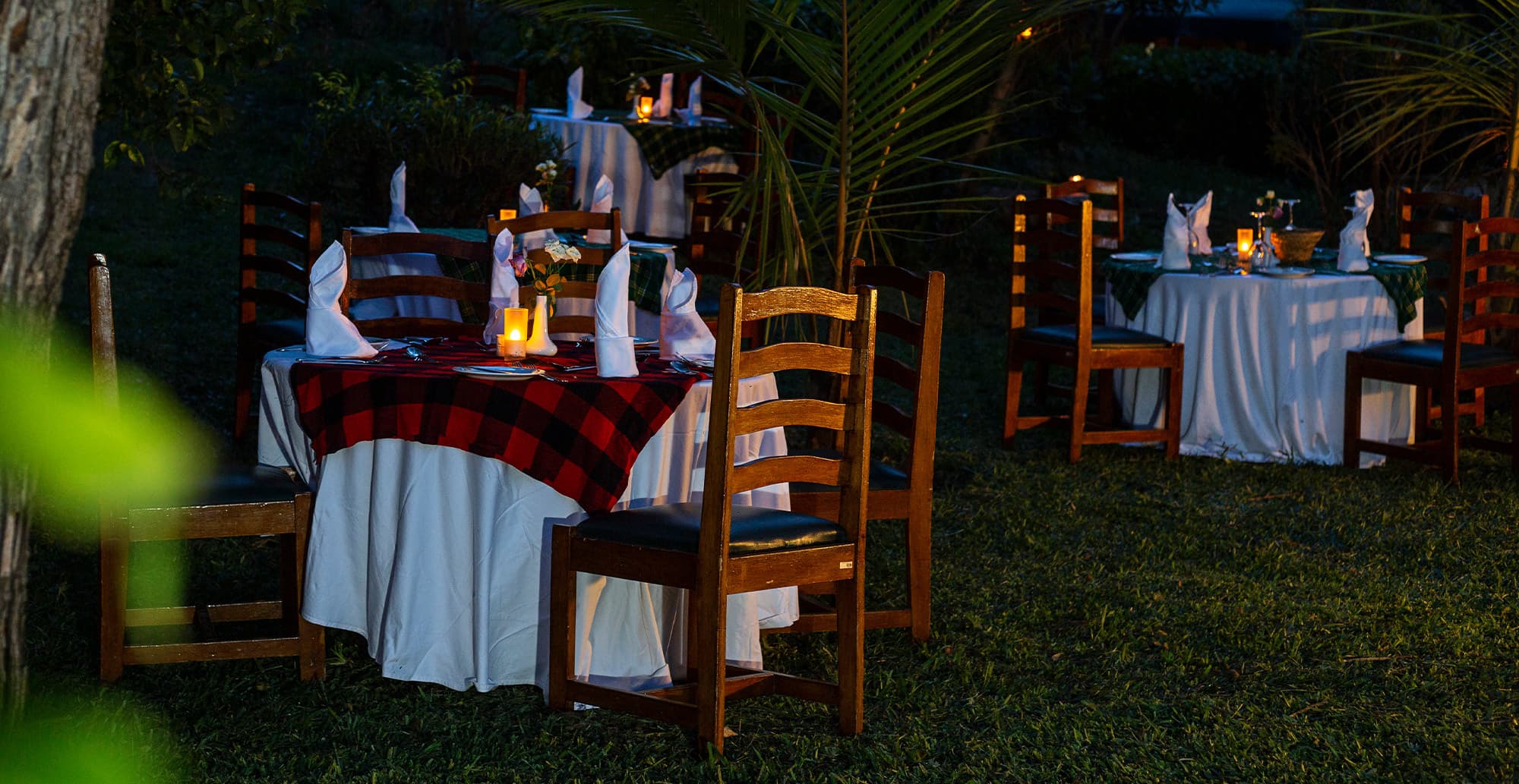 We have both indoor and outdoor dining options set around lush gardens and a serene environment that is bound to make you want to come back again and again to enjoy this feast as you soak in the revitalizing sunshine or at night as you gaze at the stunning bright stars.